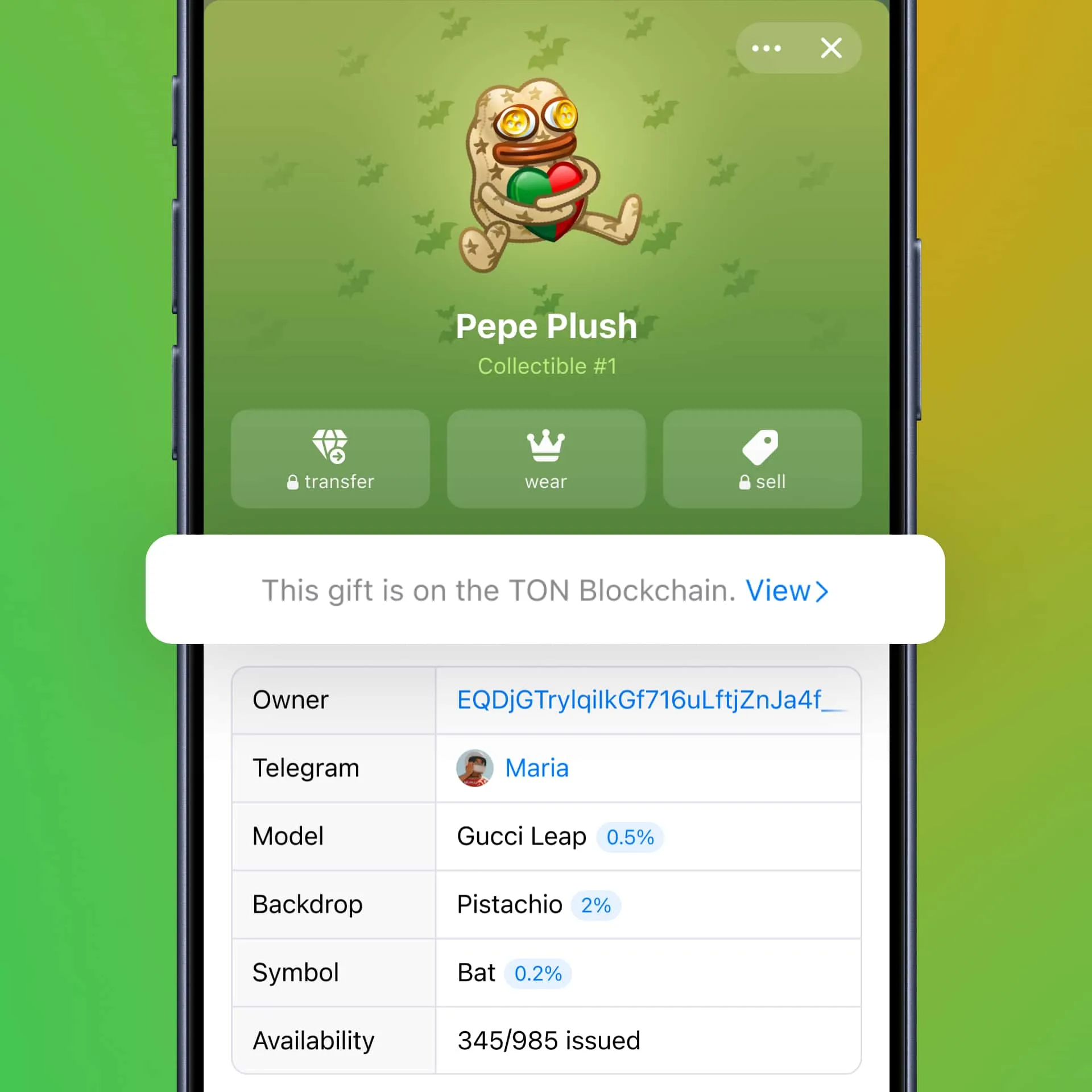 删除后,礼物描述将不再显示在 Telegram 上。
