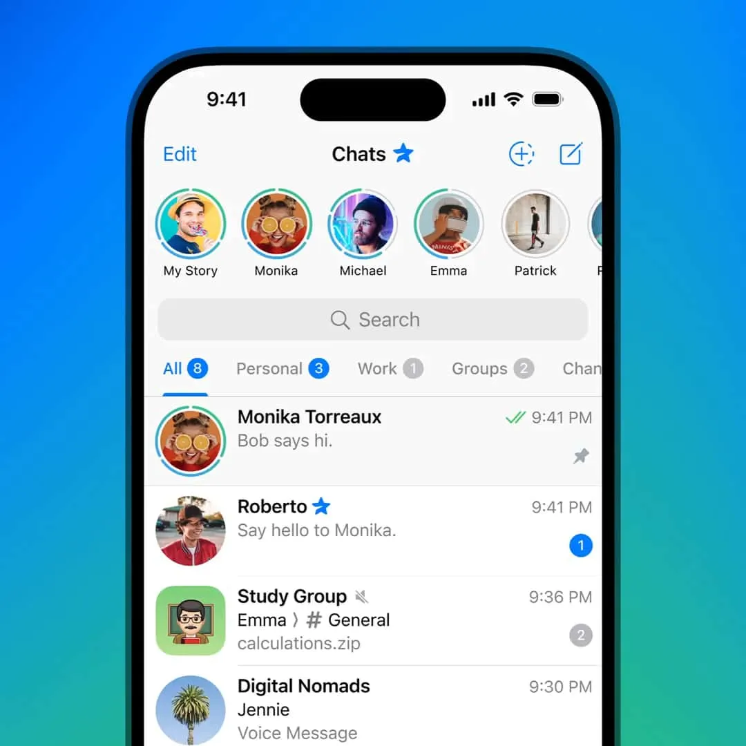 今天的更新引入了Telegram 上公开帖子全球搜索功能将故事分类到相册中,将礼物整理到收藏夹中,通过全新的时尚小程序管理机器人——以及更多功能。